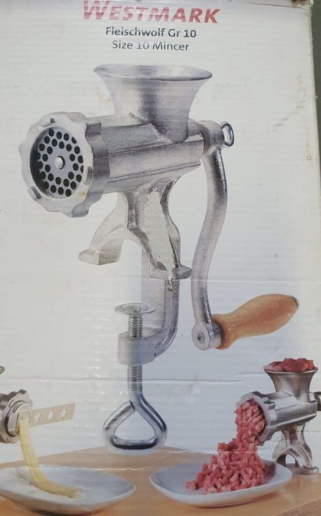 Er befindet sich wie auf den bildern zu sehen in gutem zustand. Der fleischwolf wurde als deutsche markenware verkauft. Westmark fleischwolf größe 5 gebraucht gut. Test westmark fleischwolf new style, fleischwolf mit füllstößel, lochscheiben ø 4 mm und ø 8 mm, mit gebäckvorsatz (3 motive), höchste standfestigkeit auf glatten oberflächen. Unboxing westmark fleischwolf mit 3 lochscheiben, wurstfülltrichter und spritzgebäckvorsatz, größe 8, mit saugfuß, rostfreier edelstahl/kunststoff, silber.
